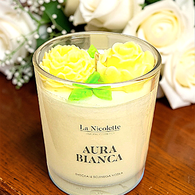 AURA BIANCA je ročno izdelana luksuzna sveča iz 100 % naravnega sojinega voska, zasnovana za vse, ki cenijo prefinjene vonje in kakovostne sestavine. Namenjena je ustvarjanju toplega, umirjenega in elegantnega ambienta v vsakem prostoru.